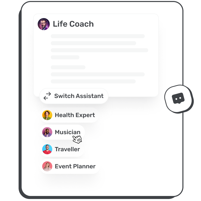 Interact with AI Assistants and see what’s happening. You can create your own assistants and switch between AI models for the selected assistant within the same conversation.
